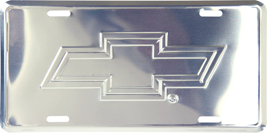 - Hangtime Chevy Bowtie on Polished Chrome Super Stock 6x12 inch License Plate.