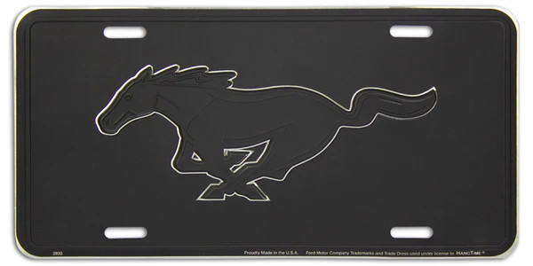 - Hangtime Ford - Mustang Emblem on Black Background 6x12 inch License Plate.