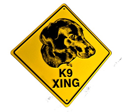 Product Description Hangtime K9 Crossing 12x12 inch Crossing Sign. 2 Holes for easy mounting. Embossed aluminum with baked on finish. Brand new - in factory shrink wrap. Proudly Made in the USA.